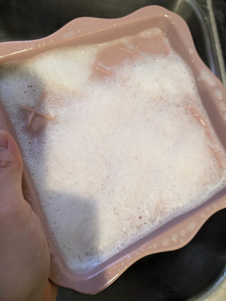 シュッと吹きかけてしばらく置いておくだけで、泡が汚れを浮かせてくれるので後はサッと洗い流すだけ!すぐ食器を洗うのが面倒くさい時に、つけ置きできるので楽です。